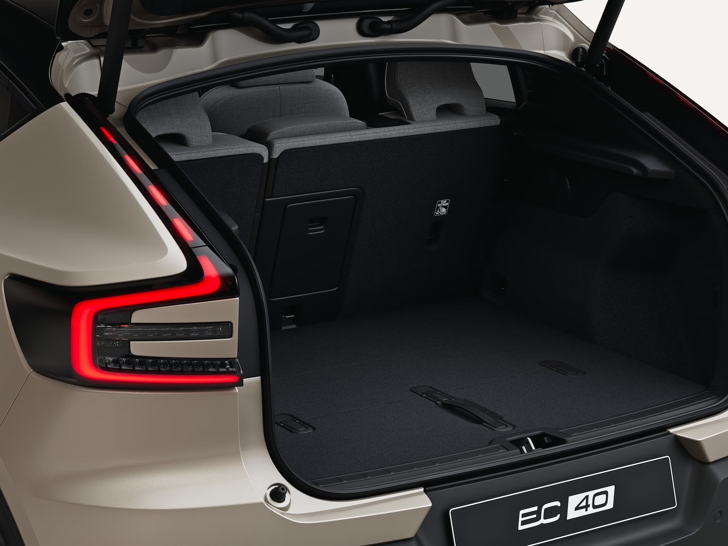 The boot of your EC40 can hold up to 404 litres. Fold down the rear seat backrests to bump that up to 958 litres, including a 59-litre compartment under the boot floor. The inner wheel arches are pushed out of the way to widen the boot and create a flat floor.
